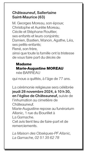 Décédée à Bouin (85230, France) le lundi 25 novembre 2024 à l'âge de 94 ans