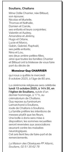Décédé à La Roche-sur-Yon (85000, France) le mercredi 8 octobre 2025 à l'âge de 80 ans