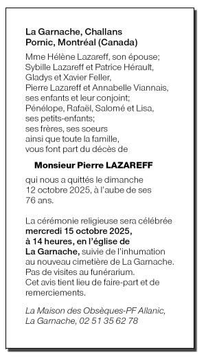 Décédé à La Garnache (85710, France) le dimanche 12 octobre 2025 à l'âge de 75 ans