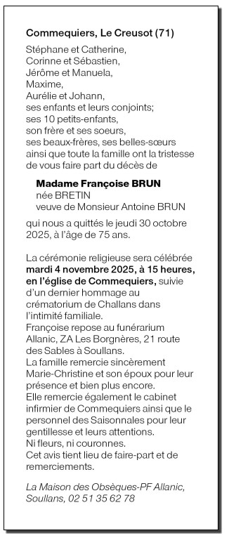 Madame Françoise BRUN née BRETIN