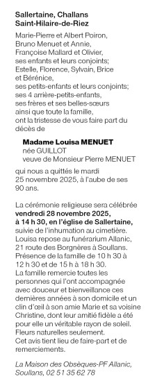 Veuve de Monsieur Pierre MENUET