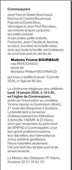 Madame Yvonne BOURMAUD née PEROCHAUD