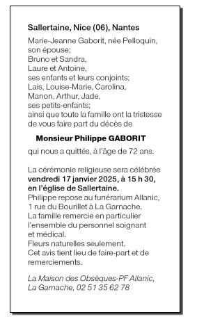 Décédé à Sallertaine (85300, France) le lundi 13 janvier 2025 à l'âge de 72 ans