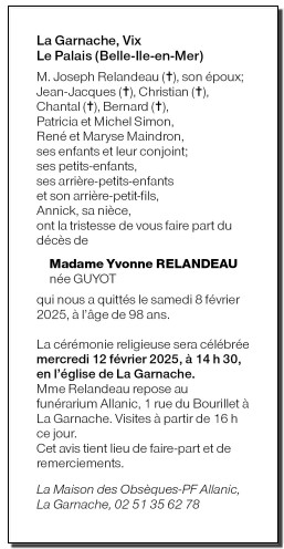 Veuve de Monsieur Joseph RELANDEAU